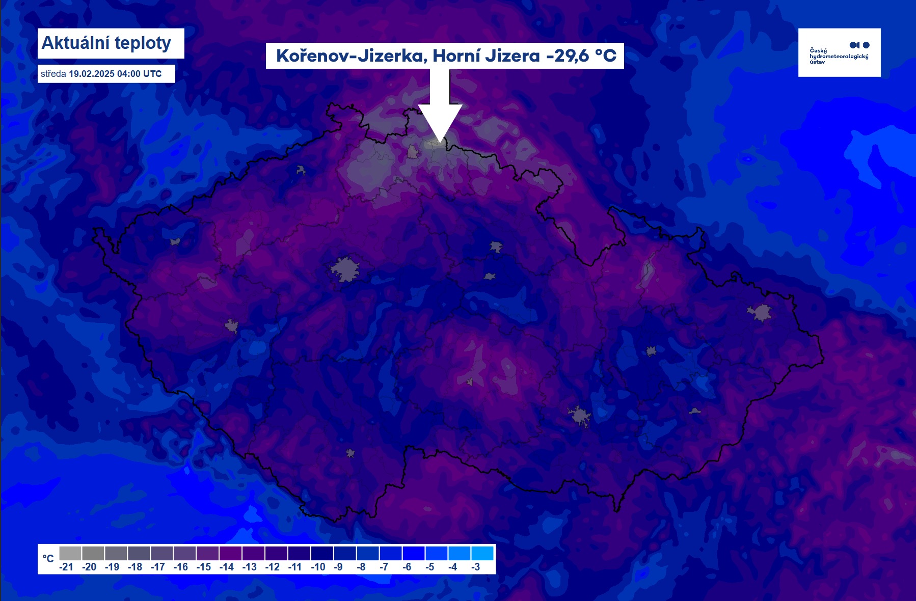 Ночь на среду, 19 февраля, оказалась в Чехии самой морозной с начала нынешней зимы. Об этом сообщил Чешский гидрометеорологический институт (ČHMÚ).