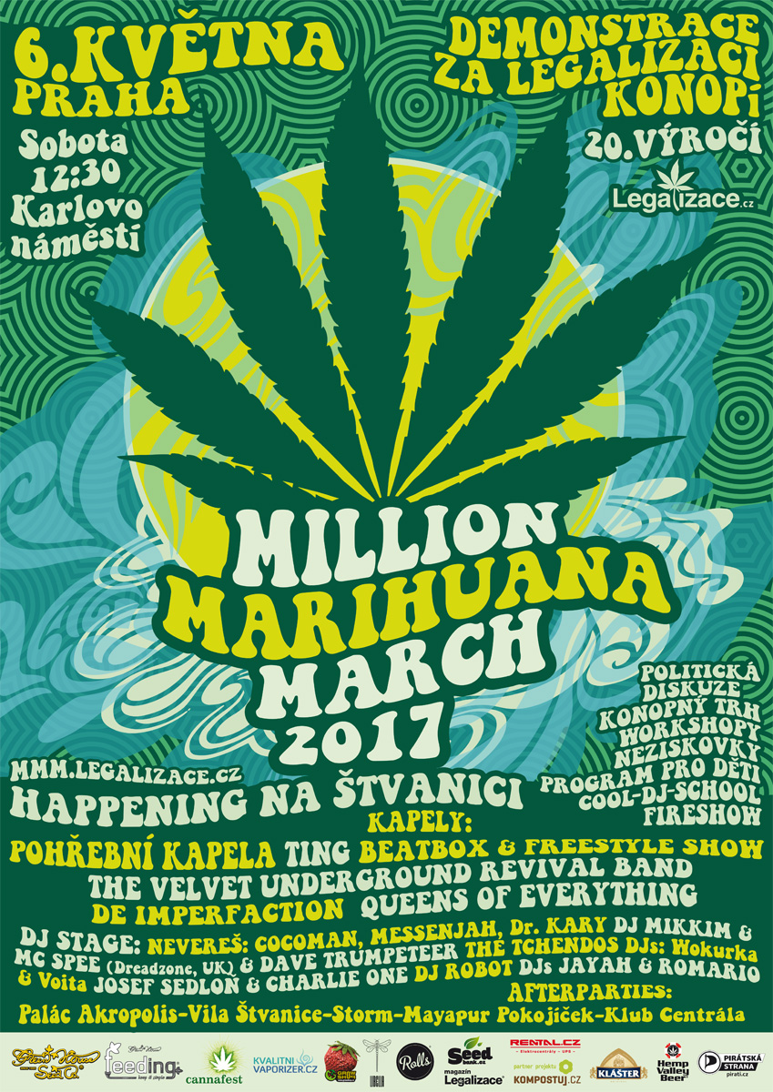 В субботу, 6 мая, по центральным улицам Праги пройдет марш сторонников легализации марихуаны. Участники акции под названием Million Marihuana March соберутся на Карловой площади (Karlovo náměstí), откуда в 12:30 под музыкальное сопровождение выдвинутся к конечной точке маршрута – острову Штванице.