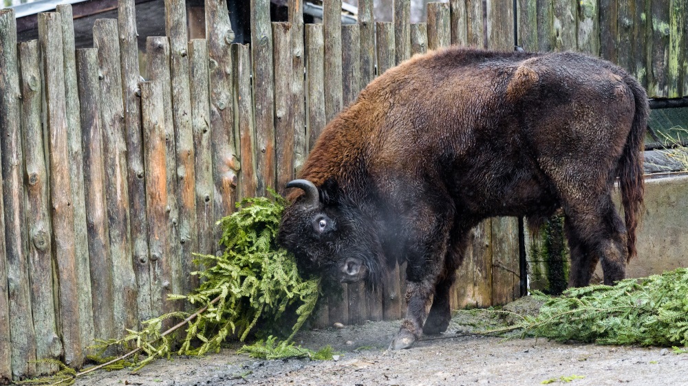 Обитателям Пражского зоопарка скормили сотни непроданных ёлок: видео