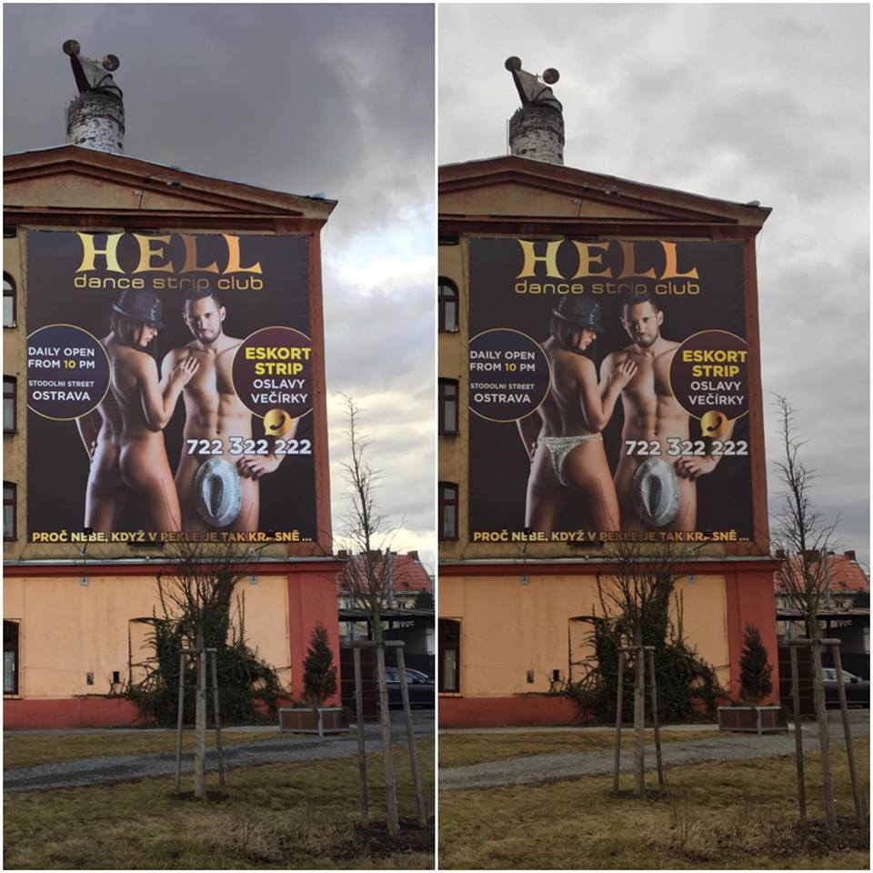 Необычный заказ получил чешский граффити-художник Никола Вавроус в конце марта. Владелец стриптиз-клуба Hell в городе Острава попросил его дорисовать трусы девушке-модели, изображенной на огромном рекламном билборде.