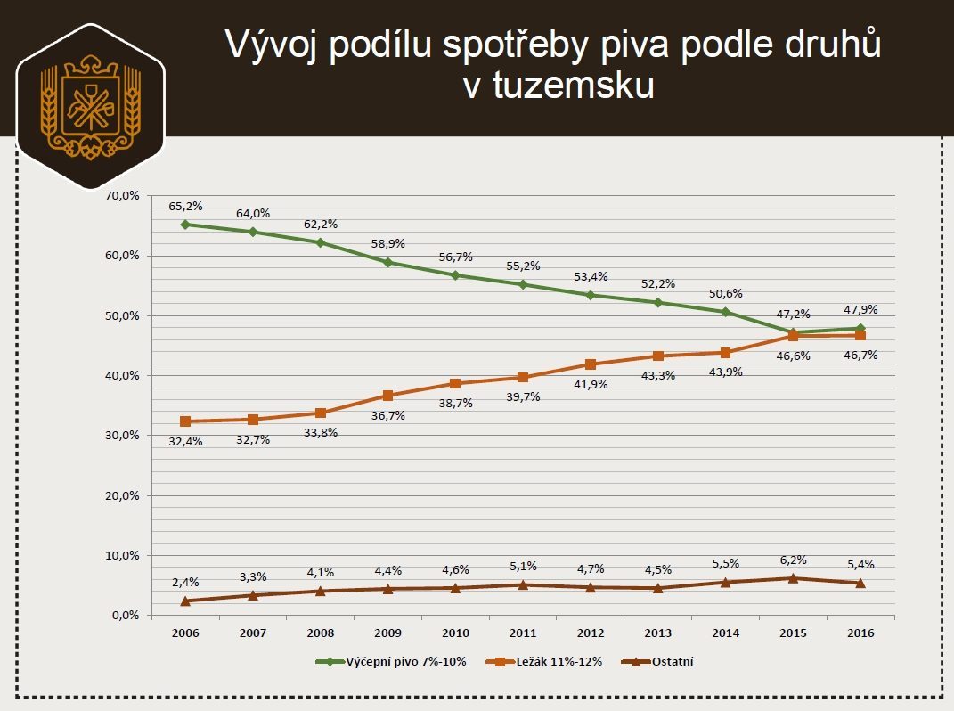 «Это связано с ростом численности населения. В прошлом году в республике стало примерно на 25 тыс. жителей больше. Другим фактором успеха на внутреннем рынке является увеличение числа иностранных туристов. В 2016 году их в Чехию приехало на 2,2 млн человек больше, чем годом ранее. Всего зарубежные путешественники выпили у нас около 785 тыс. гектолитров пива. В процентном выражении это рост на 19%», - рассказал председатель ČSPS Франтишек Шамал.