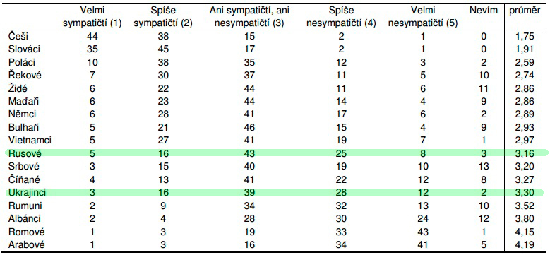 Отметим, CVVM проводит подобные исследования ежегодно, что дает возможность проследить, как менялись симпатии жителей Чехии к тем или иным национальностям на протяжении нескольких лет.