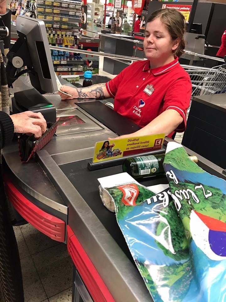 История началась с фотографии, которую сделал один из посетителей магазина Kaufland в пражском районе Михле. На ней запечатлена кассирша, чье правое предплечье почти полностью покрыто татуировкой с изображениями свастики, мужчины со вскинутой в нацистском приветствии рукой и воротами, напоминающими вход в концентрационный лагерь.