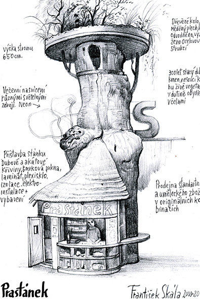 В четверг, 15 июня, на Малостранской площади (Malostranské Náměstí) свою работу представит еще один участник проекта - художник Франтишек Скала. Она представляет собой настоящий киоск с кофе и товарами ручной работы, который обустроен в стволе 300-летнего дуба. Обслуживать сказочное шестиметровое заведение будет известный пражский предприниматель Ондржей Кобза.
