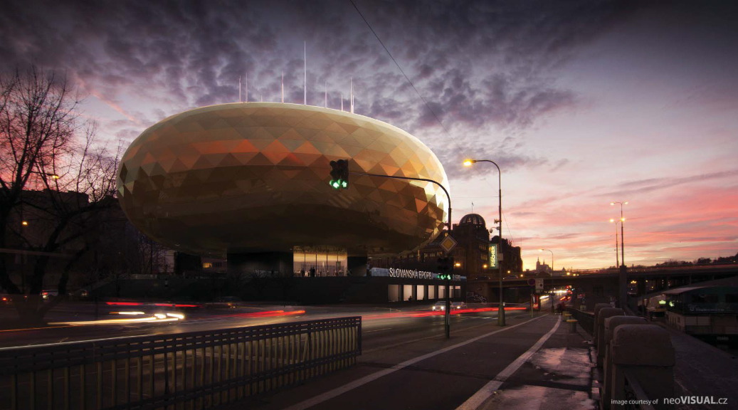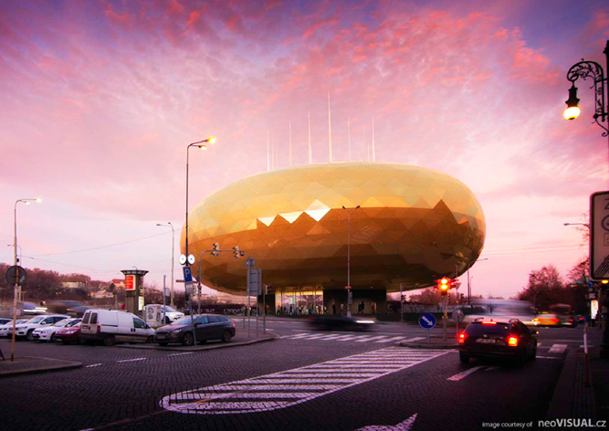 Во вторник, 15 августа, городской совет Праги одобрил изменение территориального плана для строительства галереи в конце улицы Revoluční (рядом с мостом Štefánikův most). Это лишь первый шаг на пути реализации проекта архитектора Петра Малинского, получившего рабочее название «Золотое яйцо» (Zlaté vejce), хотя сам он его называет «Золотое солнце».