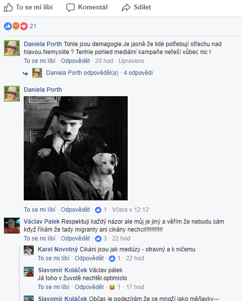 Скандальный комментарий он сделал на странице сообщества «Рассерженные матери» (Naštvané matky), члены которого выступают против мигрантов, цыган и сексуальных меньшинств в Чехии.