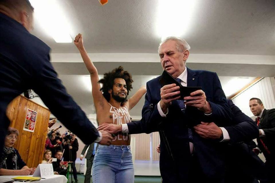 Чешский Интернет вовсю обсуждает нападение полуголой украинской активистки на действующего президента Чехии Милоша Земана. Пока одни пользователи продолжают спорить о политических взглядах главы государства, другие соревнуются в чувстве юмора. В результате в соцсетях появляются вот такие картинки.