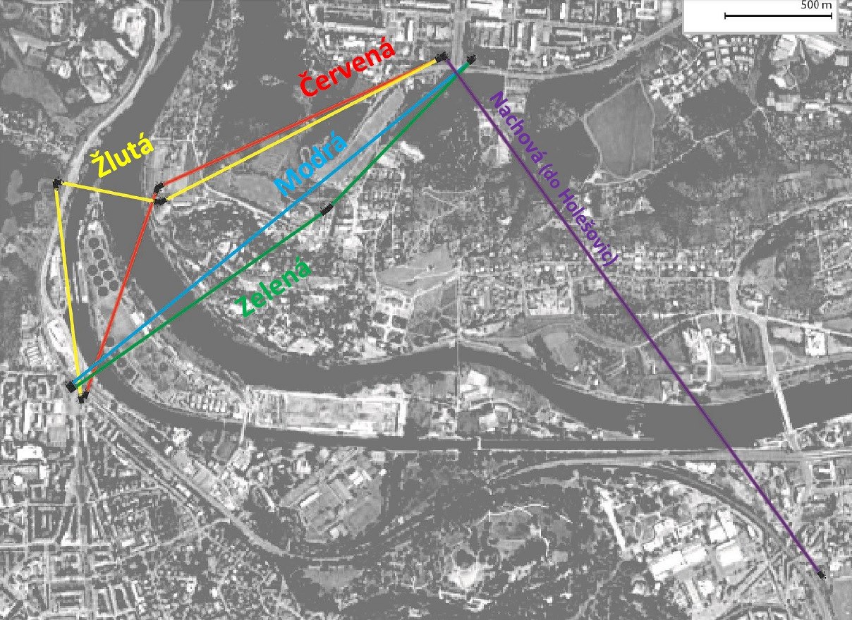 В исследовании, помимо прочего, предлагается пять возможных маршрутов канатной дороги. Ropid и Прага 6 выбрали вариант, обозначенный на схеме красным цветом. Это не понравилось руководству Пражского зоопарка, поскольку маршрут пролегает по территории учреждения.