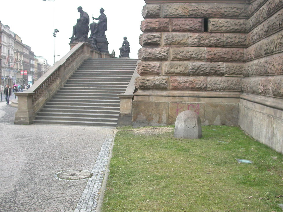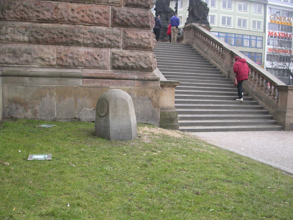 «Все началось 10 лет назад, когда наши сотрудники случайно выяснили, что помимо двух каменных блоков, расположенных сзади памятника, изначально стояли еще два блока. В прошлом столетии их перенесли к зданию Национального музея, вероятно в связи со строительством на Вацлавской площади трамвайных путей», - рассказал порталу iDNES генеральный директор Управления техническими коммуникациями Праги Петр Смолка.