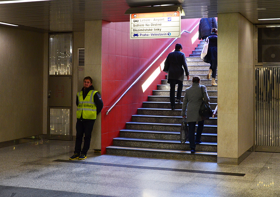 Чтобы хоть как-то облегчить жизнь пассажирам, пражский аэропорт за свой счет поставил дежурить у лестницы носильщиков. Они бесплатно помогали путешественникам поднимать тяжелые чемоданы. Спустя три года на выходе наконец-то появятся эскалаторы. Они начнут работу в пятницу, 13 апреля.