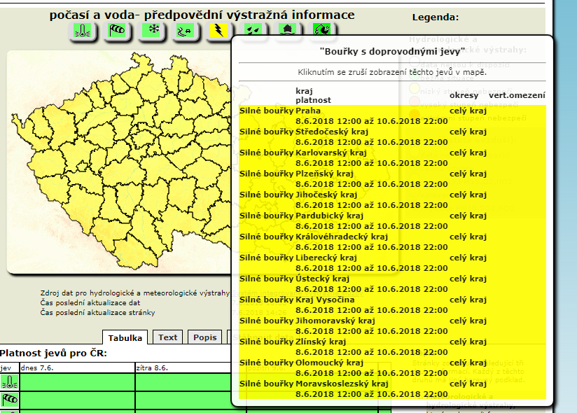 Чешский гидрометеорологический институт (ČHMÚ) объявил предупреждение о сильных грозах, которые надвигаются на страну с юга. Они будут сопровождаться обильными проливными дождями, порывистым ветром и местами градом.