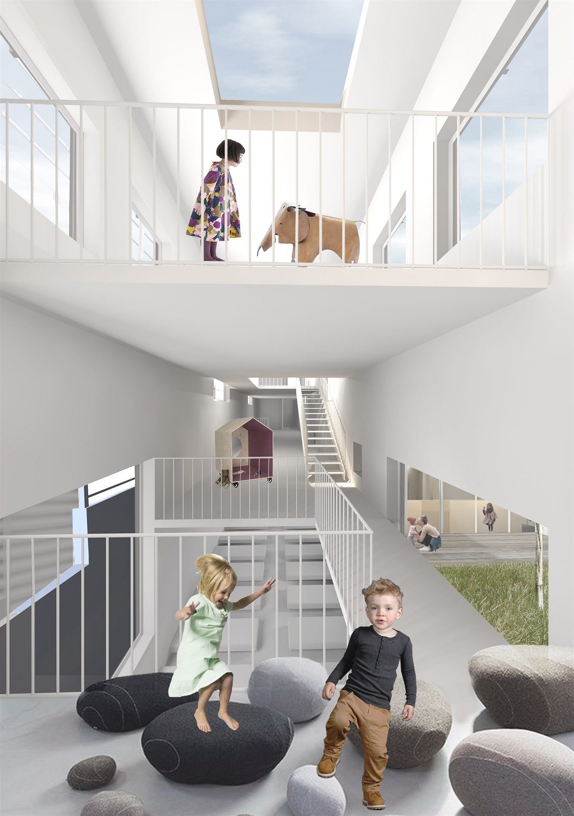«Моя мечта, чтобы юные посетители нашего детского сада научились воспринимать абсолютно другой тип интерьеров. Без дверей, коридоров или стен с лишними украшениями. Мы не хотим строить еще один классический детсад, где все пространство составляют четыре стены, покрашенные в яркие цвета. Наоборот, мы хотим оставить место для детского воображения», - заявил ранее порталу iDNES автор проекта Петр Столин.