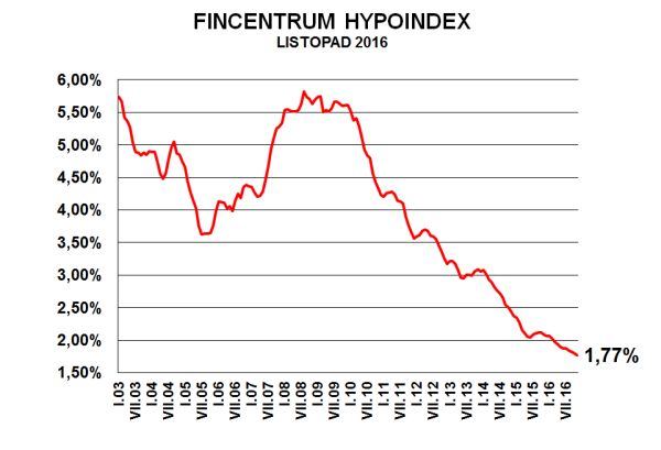 В ноябре 2016 года средняя ипотечная ставка в Чехии снизилась на 0,03% по сравнению с предыдущим месяцем и составила 1,77%. Это самый низкий показатель за всю историю сбора статистики. Такие данные содержит индекс Hypoindex компании Fincentrum.