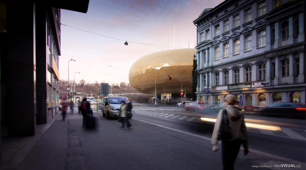 Прага 1 не осталась безучастной и во вторник представила альтернативу. Первая городская часть намерена построить галерею в конце улицы Revoluční рядом с мостом Штефаника (Štefánikův most). Администрация дала проекту архитектора Петра Малинского рабочее название «Золотое яйцо» ("zlaté vejce"), хотя сам он его называет "Золотое солнце".