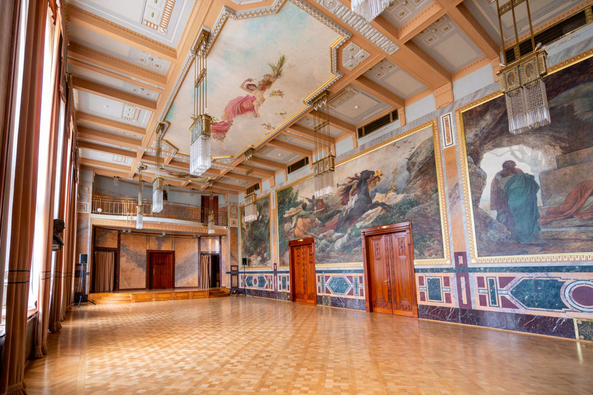 Над росписью интерьеров здания работали Альфонс Муха, Ян Прейслер, Макс Швабинский. Все оформление проникнуто тематикой национального возрождения.