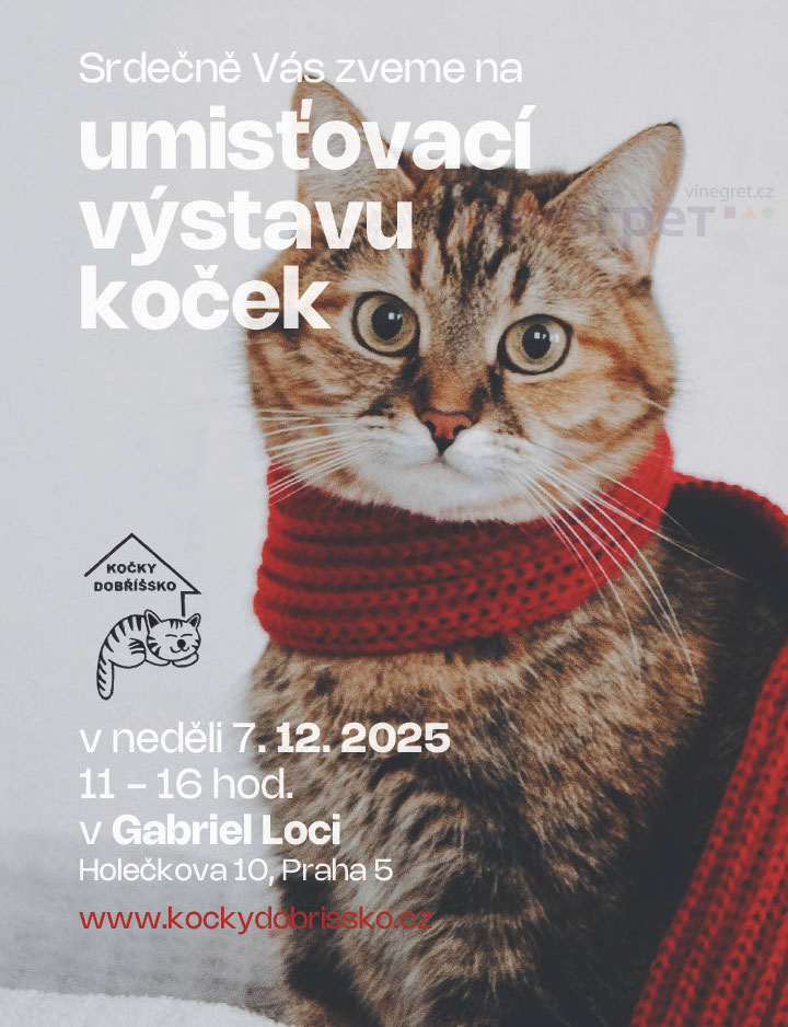 В воскресенье, 7 декабря, в выставочном зале Gabriel Loci в стенах пражского монастыря Святого Гавриила (Holečkova 106/10, Smíchov, Praha 5) состоится рождественская выставка кошек из приютов для бездомных животных.