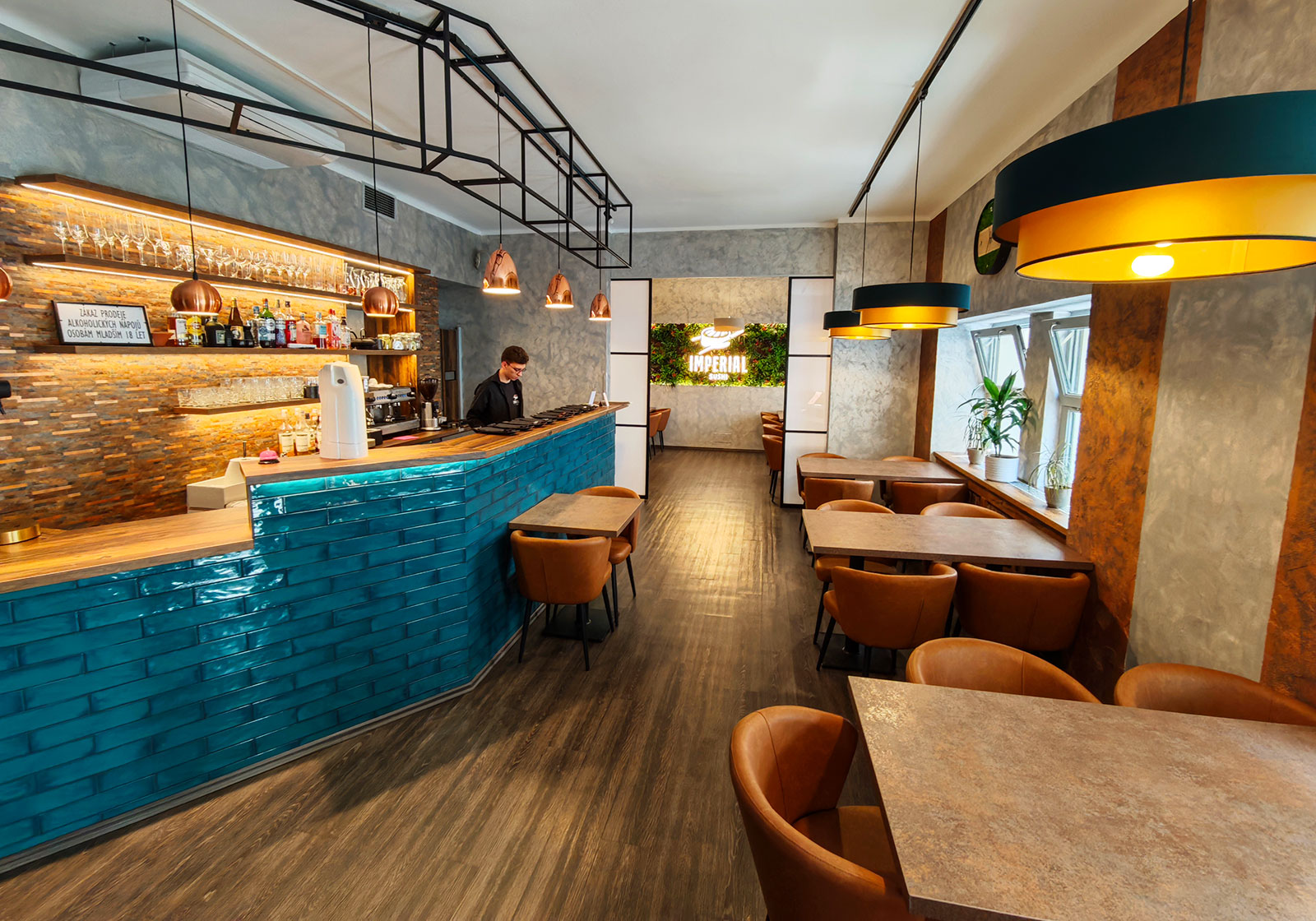 Теперь у него современный и стильный интерьер с барной стойкой и отдельным залом, который на случай семейных торжеств или частных мероприятий можно отделить перегородкой.