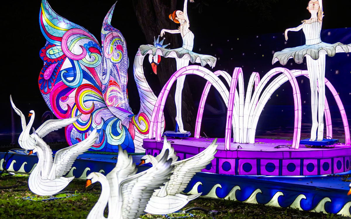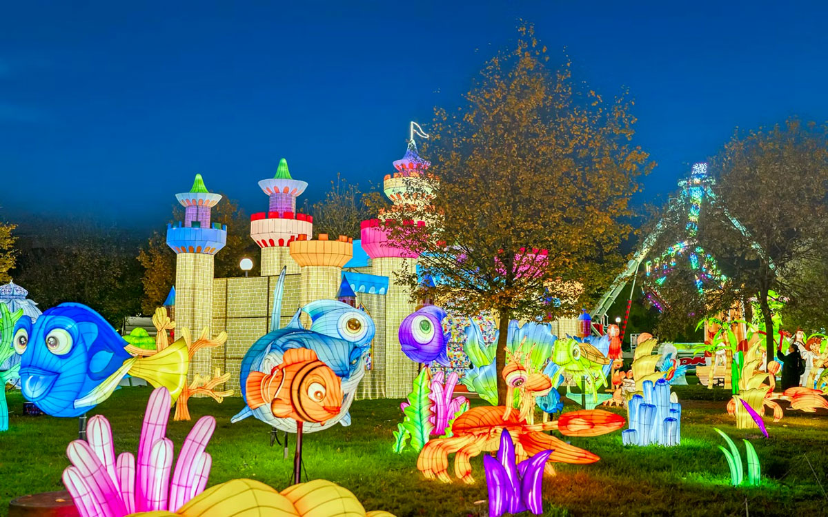 Гостей ждут более 200 новых световых скульптур, интерактивных объектов и аттракционов (карусели, автодром, зеркальный лабиринт и т.д.).