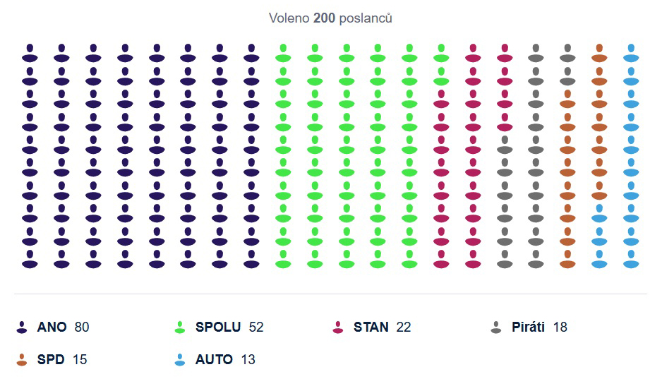 Вечером в субботу ANO начало переговоры о формировании парламентского большинства и правительства с лидерами SPD и Motoristé sobě. Если они завершатся успехом, то коалиция будет иметь большинство в 108 голосов.