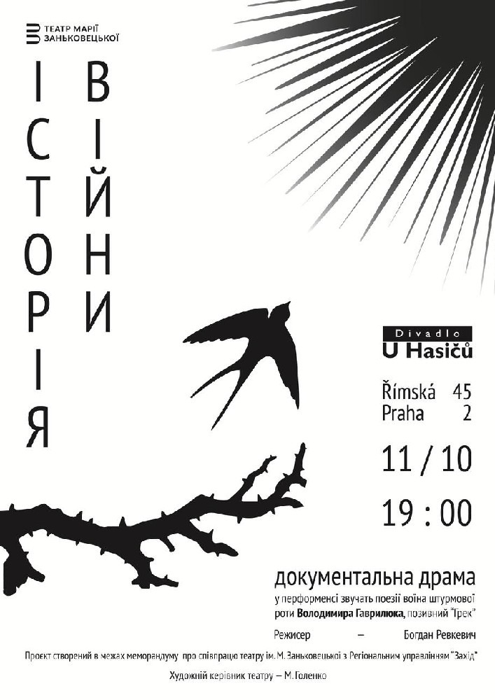 Украинский драматический театр имени Марии Заньковецкой привезет в Прагу свой новый спектакль «История войны». Представление состоится в ближайшую субботу, 11 октября.