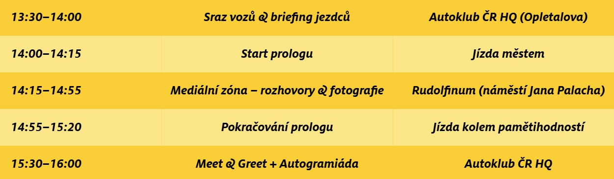В 13:30 машины соберутся на улице Opletalova перед зданием Автоклуба Чехии, а через полчаса начнется заезд.