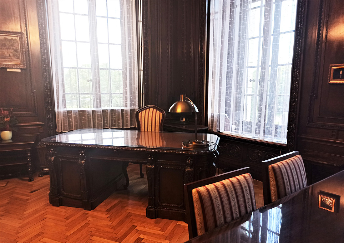 После прекрасно проведенной реставрации они вновь обрели свое первоначальное великолепие и красоту, будь то деревянная обшивка потолков и стен с художественными деталями резьбы, люстры, мебель, гобелены или другие предметы интерьера.