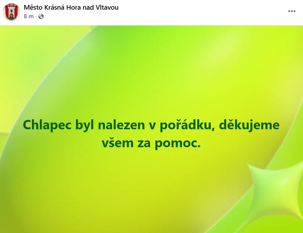 Следователи предположили, что ребенок мог направиться в соседний город Krásná Hora nad Vltavou, куда родители привозили его на прошлых выходных и ему там очень понравилось.