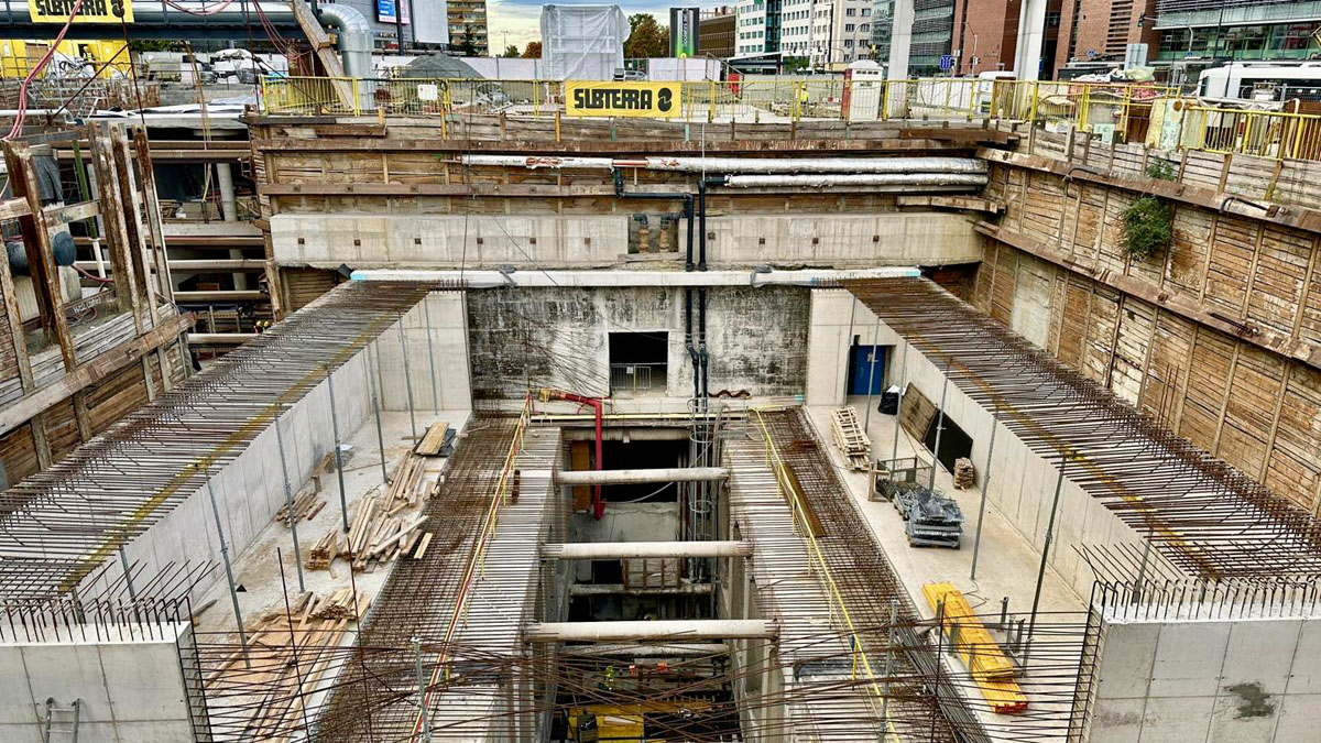 Завершен монтажи дверей и стеклянных стен. Идет строительство лифта с платформы на улицу и железобетонных конструкций в месте перехода между линиями "C" и "D".