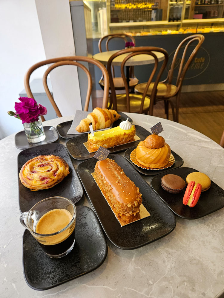 В кондитерской всегда есть несколько видов фирменных тортиков и восхитительных эклеров, а также самый большой выбор макарунс во всем городе.