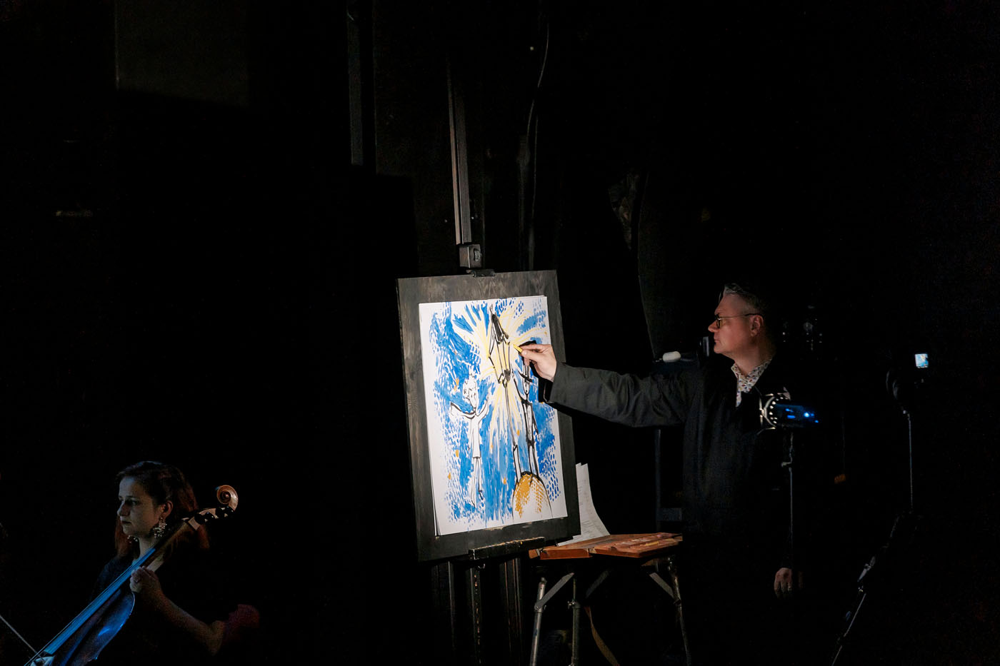 Одновременно на глазах зрителей оживут иллюстрации Экзюпери. Их с чистого листа будет воссоздавать профессиональный художник Герман Гротт. За его работой в режиме реального времени можно будет наблюдать на большом экране.