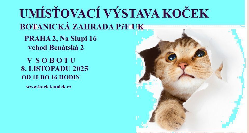 В ближайшую субботу, 8 ноября, в Праге состоится выставка кошек, которые по разным причинам оказались в приютах. Она пройдет в ботаническом саду Природоведческого факультета Карлова университета с 10:00 до 16:00.