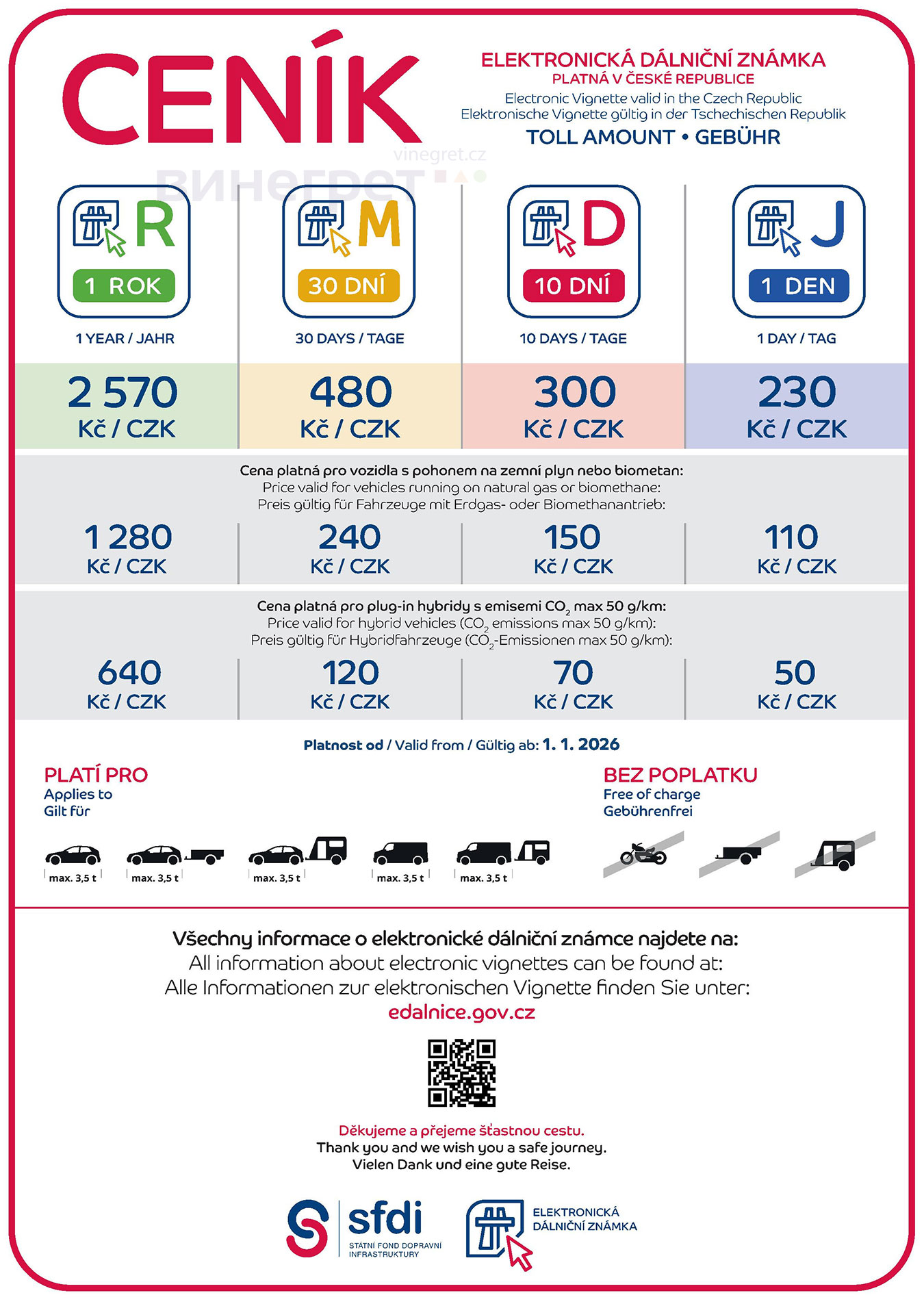 👉 Виньетки в Чехии продаются в электронном виде. Купить их можно на государственном портале https://edalnice.cz/