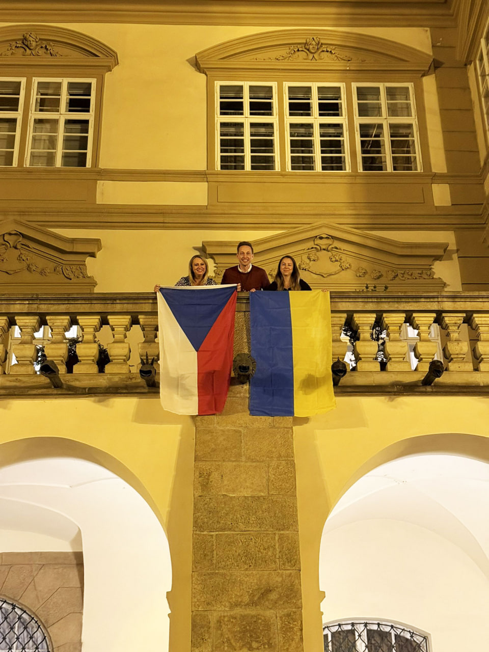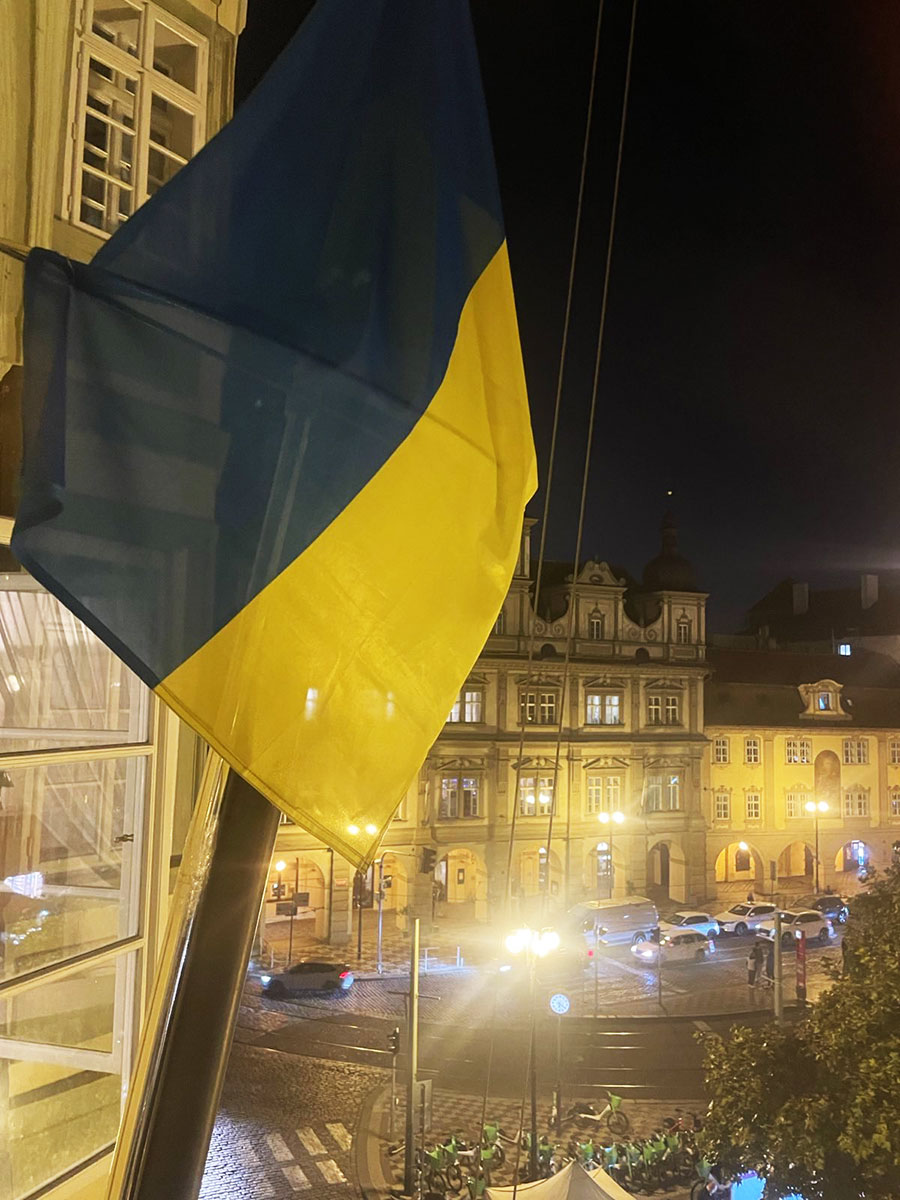 «Мы вывесили из окна клуба TOP09 флаг с подписью генерала Залужного, привезенный с фронта. В честь тех, кто защищает свободу.