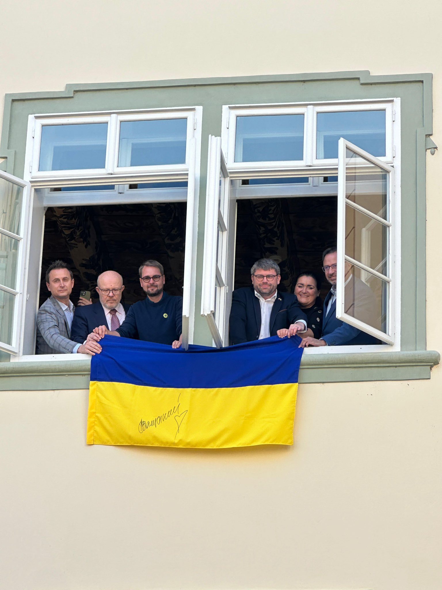 Днем в пятницу, 7 ноября, члены партии TOP 09 вывесили из окон своего офиса в здании палаты депутатов парламента Чехии сразу два флага Украины.