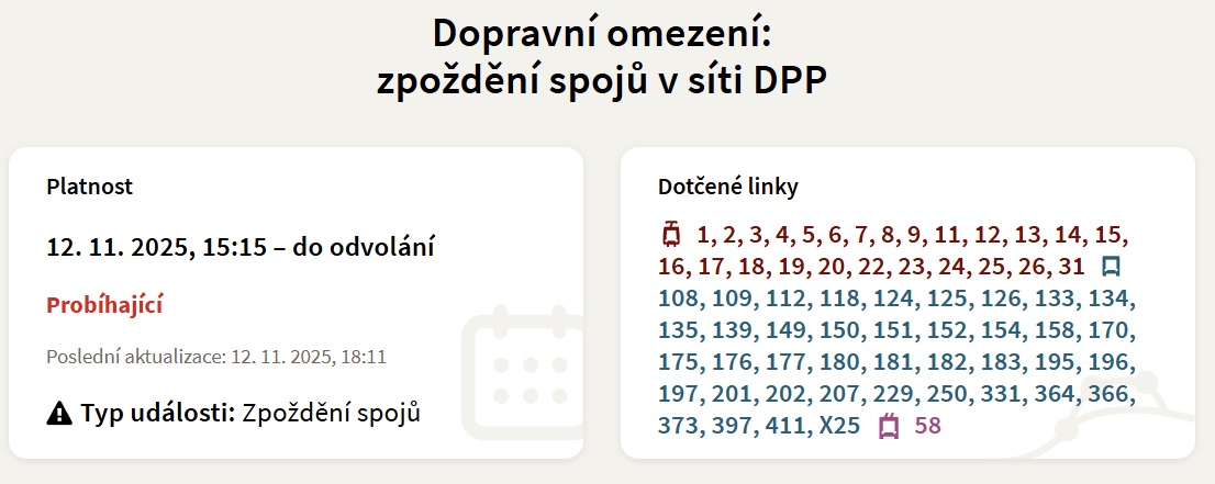 В качестве причины сложившейся ситуации Транспортное предприятие Праги указало интенсивное автомобильное движение на маршрутах конкретных линий.