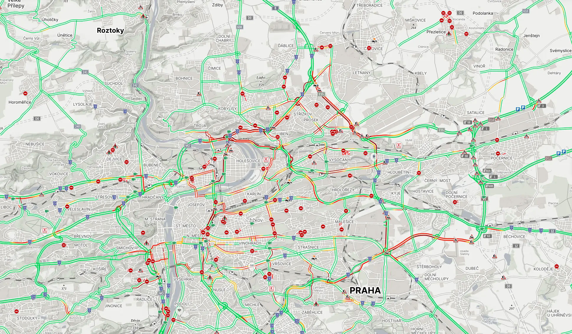 Вечером в среду, 12 ноября, десятки маршрутов наземного общественного транспорта в центре Праги выбились из расписания из-за крайне плотного автомобильного движения. Транспортное предприятие рекомендовало пассажирам пользоваться метро.