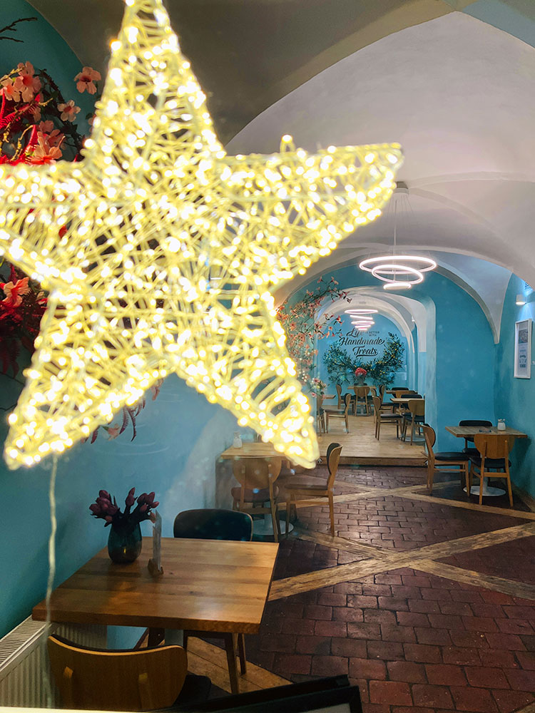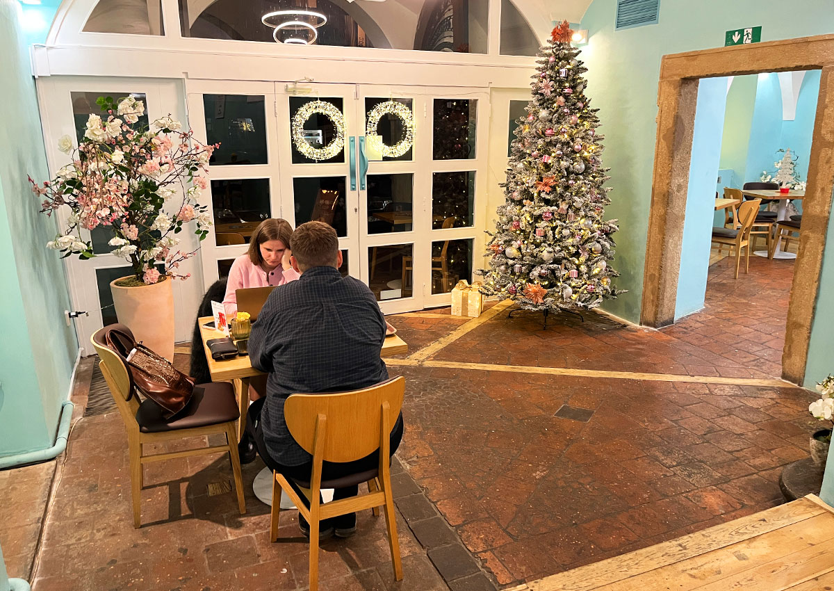 Это кафе существенно отличается от двух других своих пражских собратьев, расположенных в торговых центрах Galerie Harfa и Westfield Chodov.