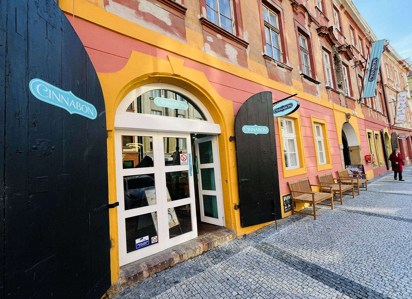 В Праге сегодня работают три кафе Cinnabon, а также есть доставка через сервисы Wolt, Bolt и Foodora.