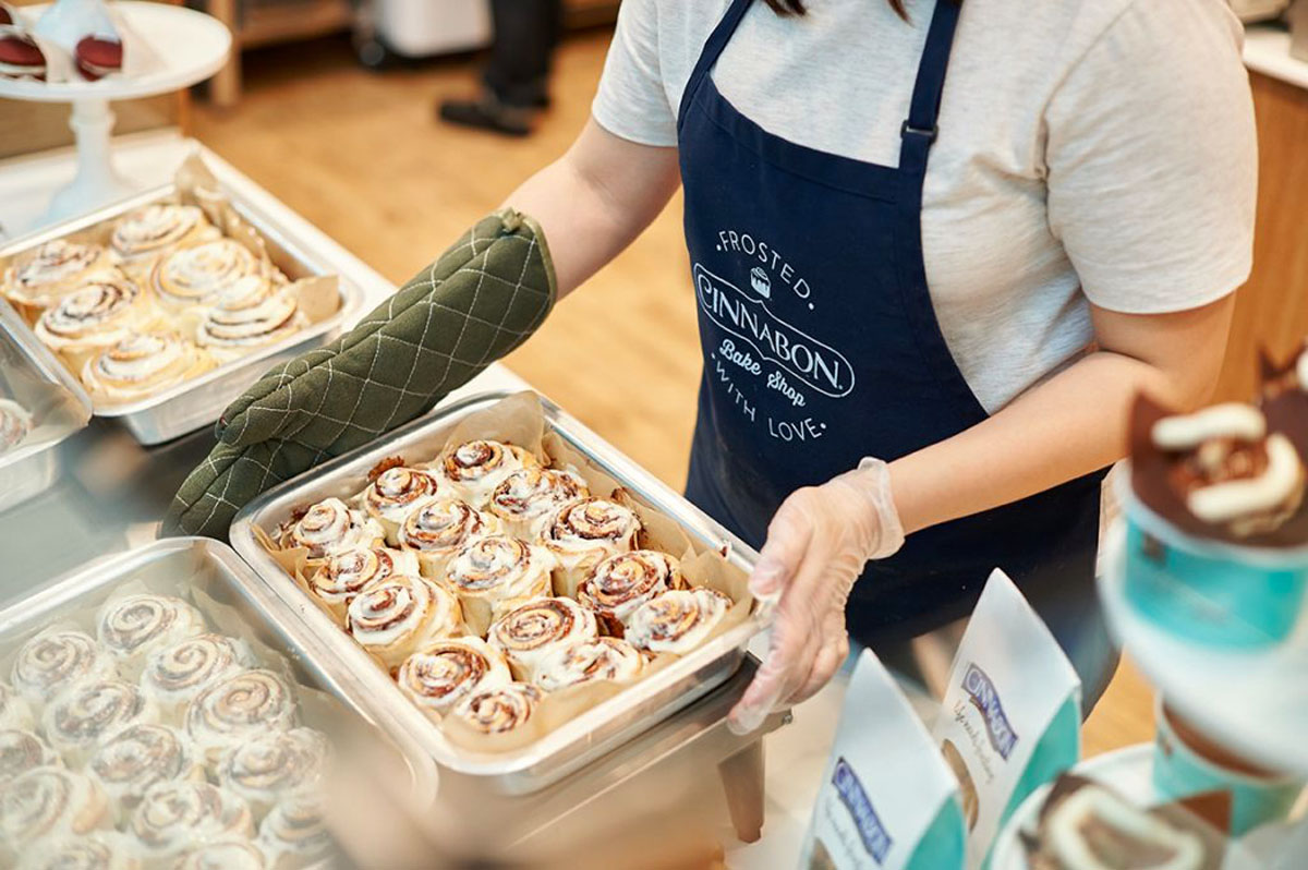 Cinnabon – не просто кафе, но еще и пекарня. Компания принципиально не работает с замороженными полуфабрикатами.
