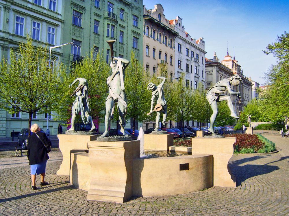 Другое произведение автора, мимо которого наверняка проходил каждый пражанин – фонтан «Музыка рек» (Hudba řek) на площади Senovážné náměstí.