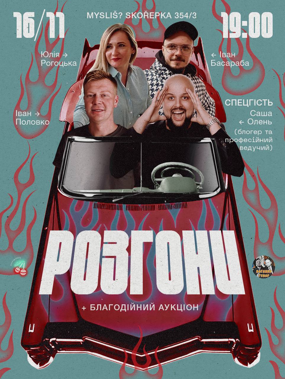 «Розгони» – класичний формат від Stand Up Cherry, де декілька харизматичних осіб створюють комедію на очах глядачів.