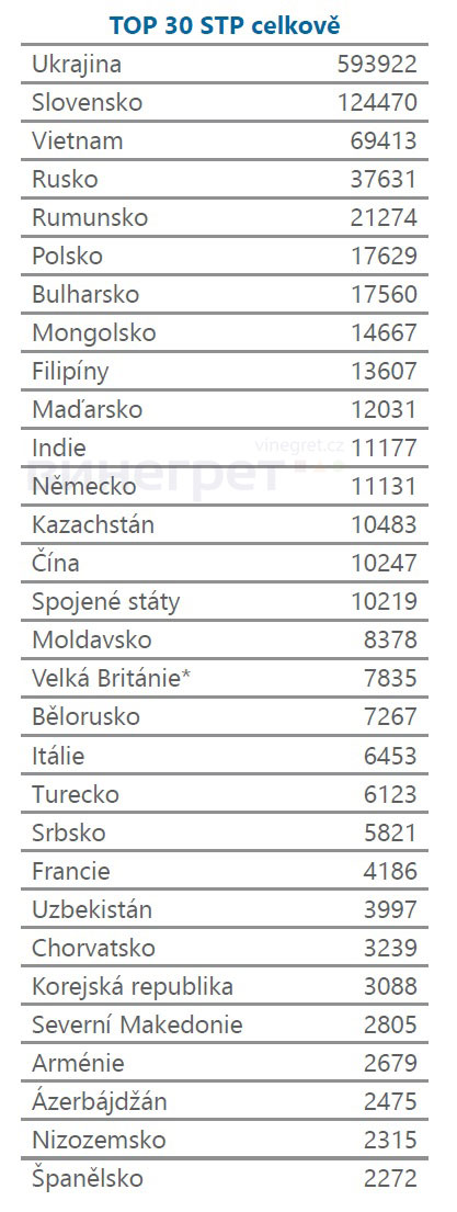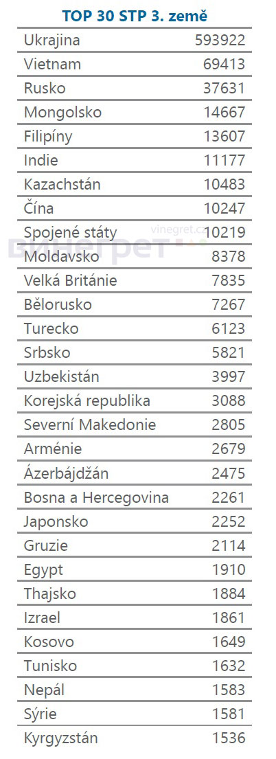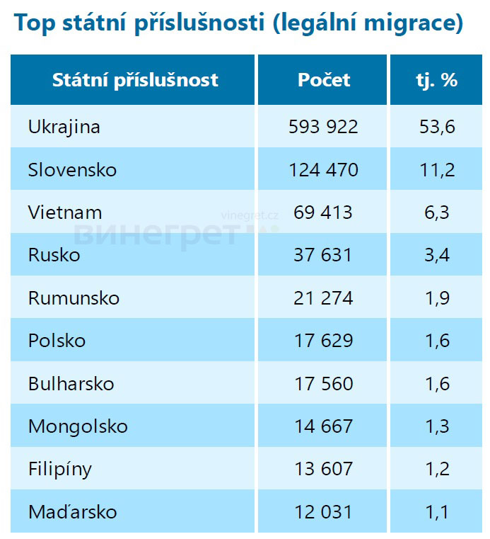 Далее следовали граждане Словакии – 124 470 человек (11,2%), Вьетнама – 69 413 человек (6,3%) и России – 37 631 человек (3,4%).