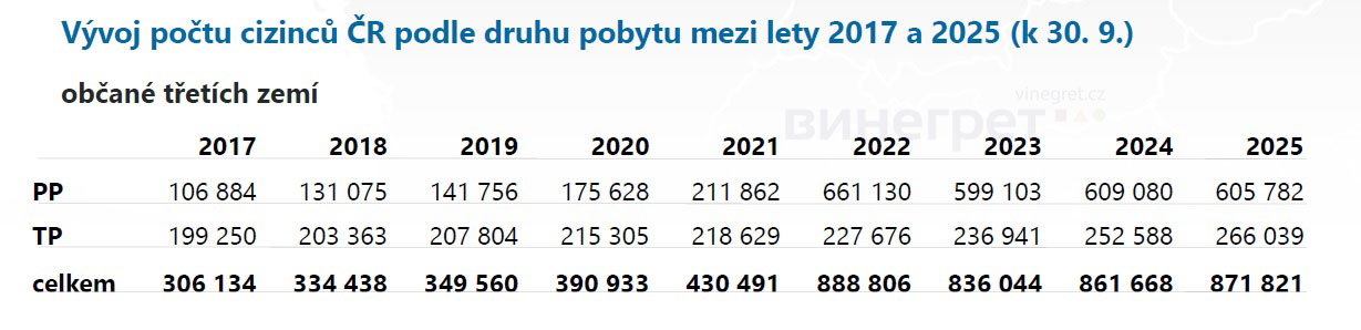Министерство внутренних дел Чехии опубликовало подробный отчет о внешней миграции в третьем квартале 2025 года.