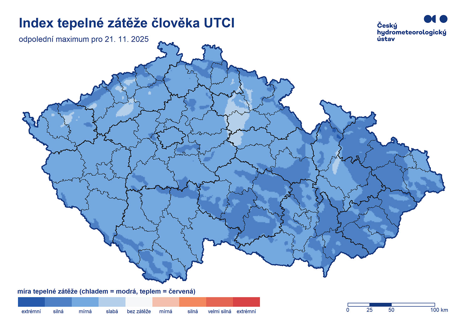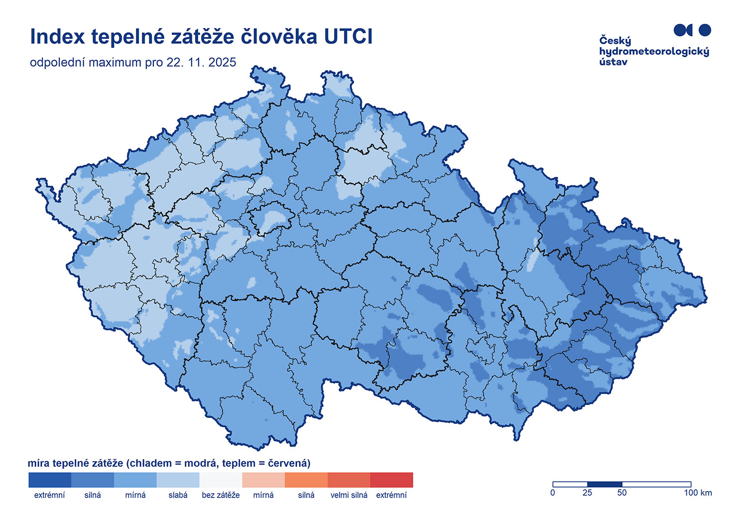 Ниже метеорологи опубликовали карту тепловой нагрузки на человеческий организм, которая составлена на основе универсального теплового климатического индекса. Он учитывает одновременное влияние температуры воздуха, влажности воздуха, скорости ветра, коротковолнового и длинноволнового излучения на человеческое тело.
