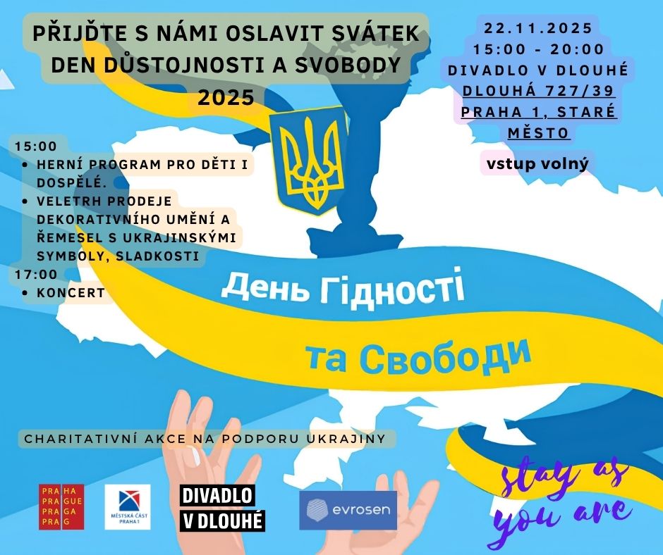 В субботу, 22 ноября, в пражском театре Divadlo v Dlouhé состоится музыкальный концерт по случаю Дня достоинства и свободы Украины. На месте также будет представлена выставка детских рисунков, отражающих взгляд детей на свободу, смелость и надежду.