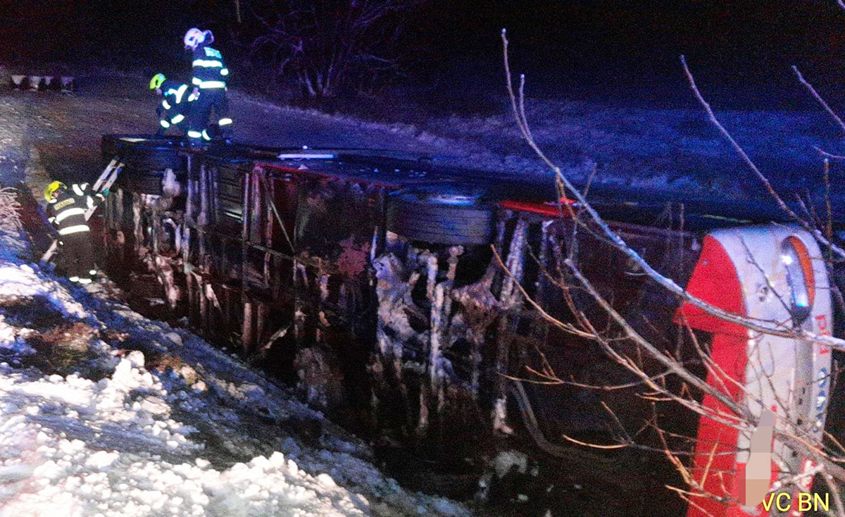 Рано утром в среду, 26 ноября, на шоссе в окрестностях поселка Хоратице Среднечешского края перевернулся региональный автобус PID. В момент аварии в нем находились 20 человек.