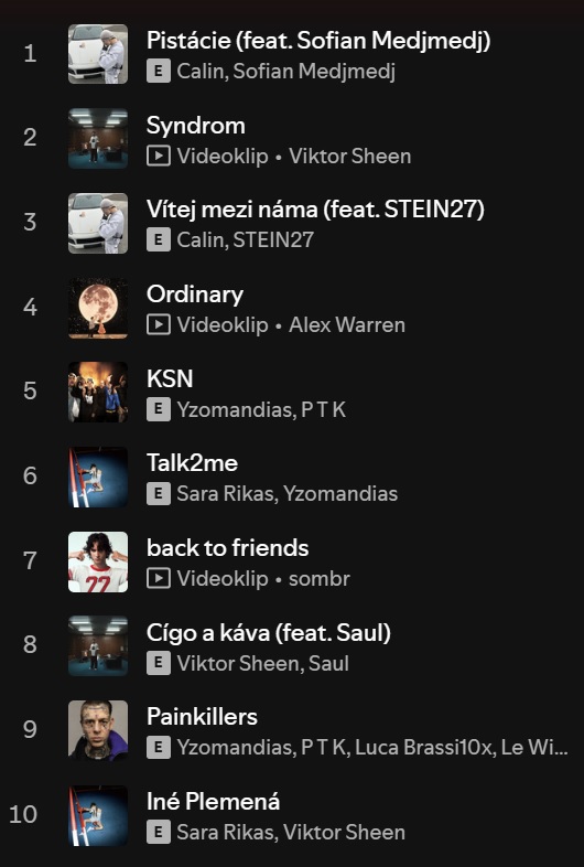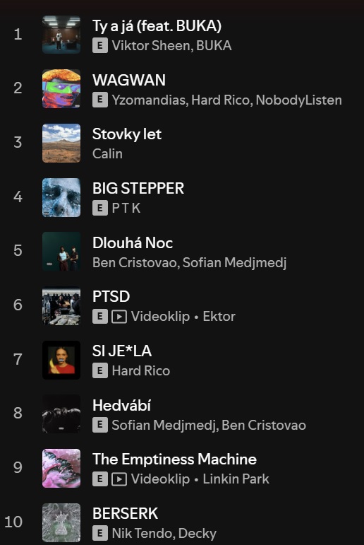 Десять самых прослушиваемых песен в Чехии в 2025 году (открыть плейлист):