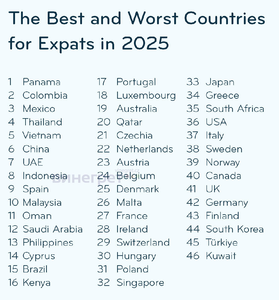 Крупнейшее интернет-сообщество экспатов InterNations решило выяснить, в каких странах иностранцам живется лучше всего. В рамках исследования Expat Insider 2025 были опрошены более 10 тыс. граждан 172 стран, живущих и работающих за пределами родины.