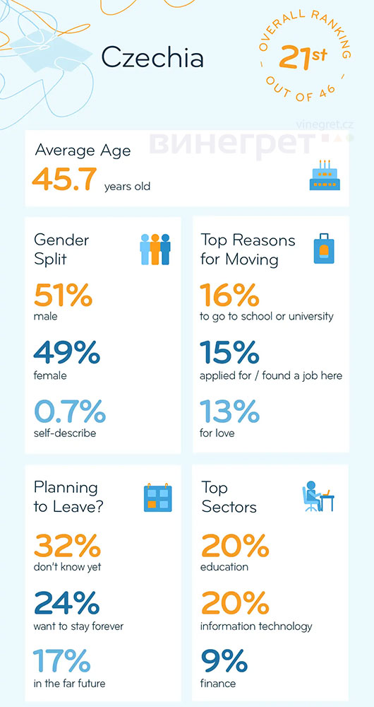 Около 32% опрошенных экспатов пока не определились, планируют ли ни они задержаться в Чехии, тогда как 24% хотят остаться в стране навсегда.